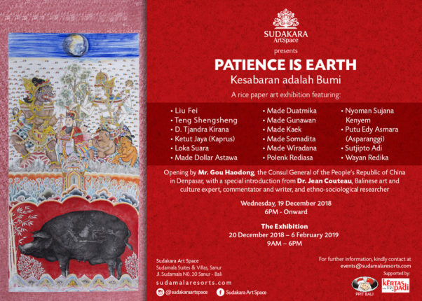 サヌール地区、Sudamala Resort(スダマラリゾート)に併設するアートスペース “Sudakara(スダカラ)”では、2018年12月19日から2019年2月6日まで「Patience is Earth展」を開催。