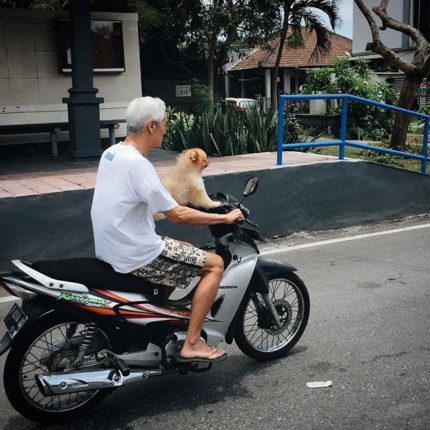 バリの日常一コマ。ワンコも上手にバイク🛵に乗りますよ